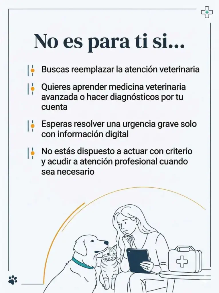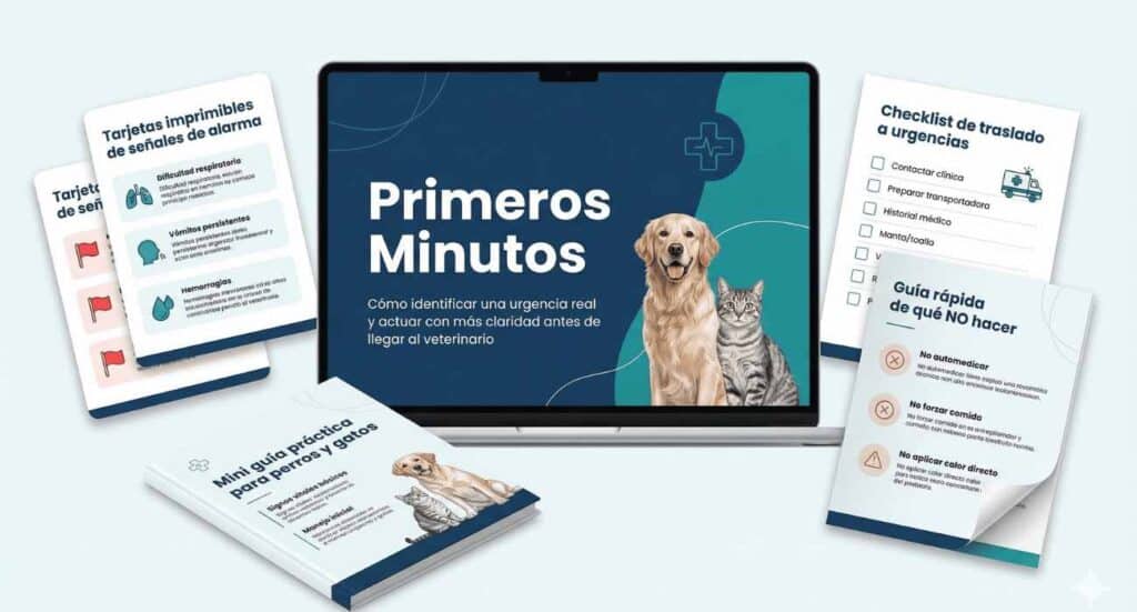 No. Primeros Minutos está diseñado para ayudarte a reconocer señales de alarma, reaccionar con más claridad y evitar errores comunes, pero no sustituye una consulta o atención veterinaria cuando realmente se necesita.